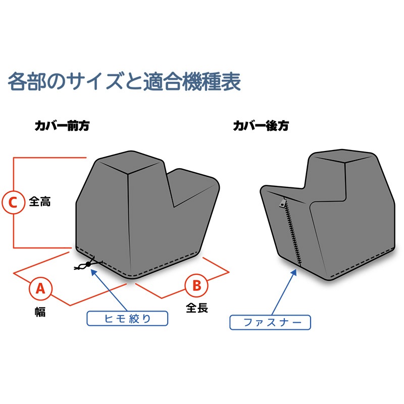 ・ファスナー付きで除雪機にカバーが掛けやすい
