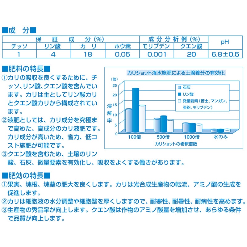 カリショット 10kg 1-4-18 多木化学 液体肥料 低コスト施肥 省力 希釈 液肥 新ク D
