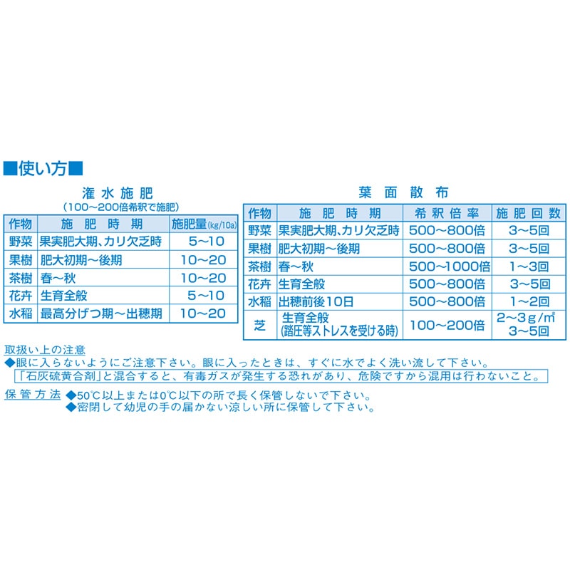 ・液肥としては、カリ成分を究極まで高めた、構成分のカリ液肥です。