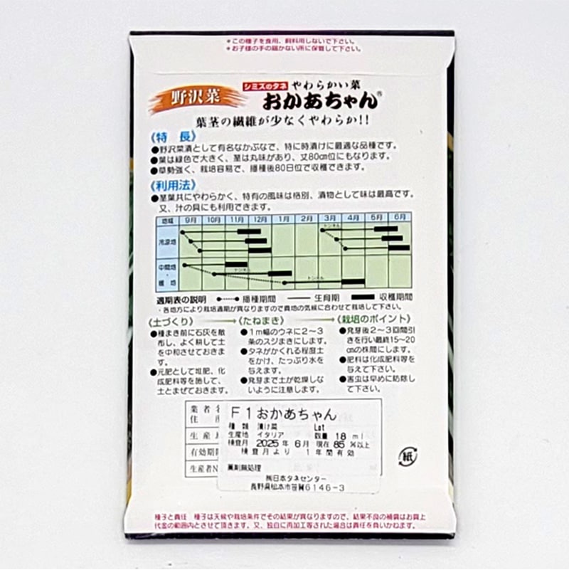 3袋 種子18ml 野沢菜 やわらかい菜 おかあちゃん F1 シミズのタネ 漬け菜 日本タネセンター 吉S DZ