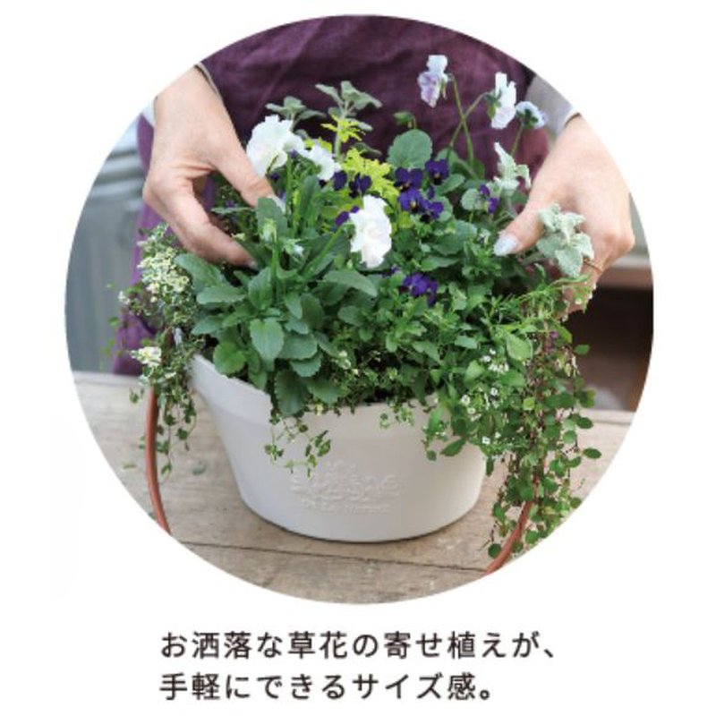 お洒落な草花の寄せ植えが、手軽にできるサイズ感。