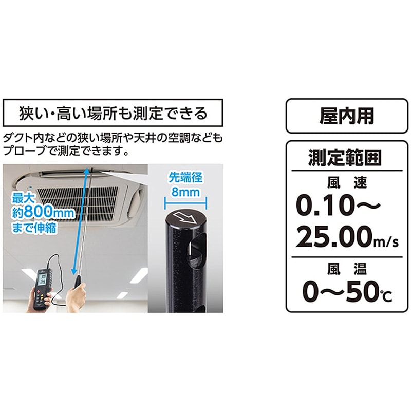 伸縮プローブで換気ダクトや吹出口の微風も測定