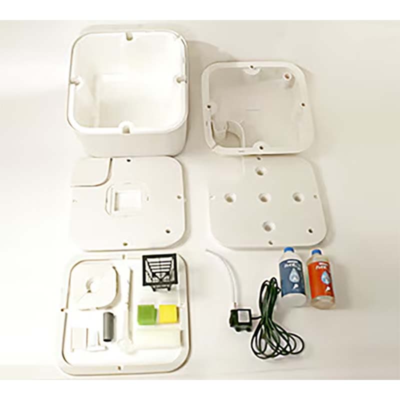 付属品:ハイポニカ液体肥料(500ml)・果菜鉢・鉢カバー・支柱枠・うき・仕切り板・果菜/葉菜プレート・給液カバー・液肥タンク・栽培槽・液肥槽・循環ポンプ・チューブ・水位調節管・空気混入器・果菜、葉菜用スポンジ