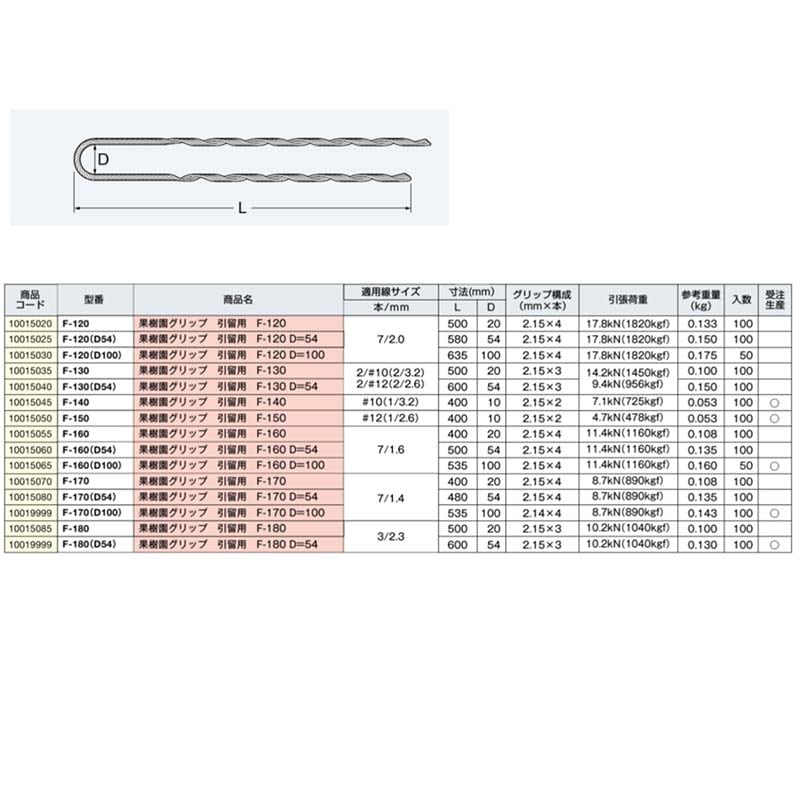 果樹園用F型巻付グリップ 引留グリップ F-180 100本 東神電気 果樹園グリップ 引留用 工具不要 簡単 果樹園 農業 アM 代引不可