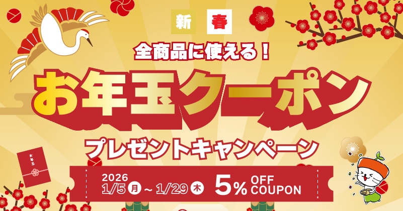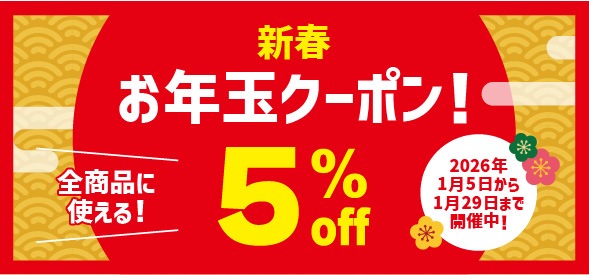 【5%OFFクーポン】新春初売り!全商品に使えるお年玉クーポンをプレゼント